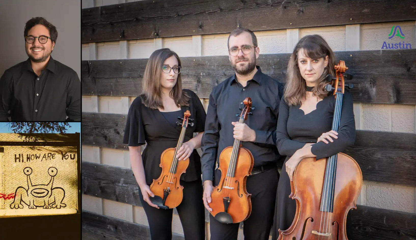 Join Amorsima Trio for an evening of adventurous new music, featuring the world premiere of How Are You? for string trio, video, and electronics by Austin-based composer Stephan Arce-Penedo. This multimedia work pays homage to Austin throughout the 20th and 21st centuries, combining historic video footage and audio interspersed with sounds of the string trio. The program also includes Alan Mackwell’s Remains of a Permian Gas Station (a sonic portrait of an abandoned gas station in West Texas), Missy Mazzoli’s Lies You Can Believe In (a work based on “urban folk music”), and more music by Mario Lavista, Giovanni Sollima, Ermir Bejo, and Andrea Casarrubios. This project is supported in part by the City of Austin Office of Arts, Culture, Music and Entertainment. Amorsima Trio is a boundary-pushing ensemble that redefines the traditional expectations of a string trio, bringing a fresh and contemporary perspective to the stage. Comprised of violinist Mia Detwiler, violist Mike Capone, and cellist Kourtney Newton, the trio was founded in 2016 through a shared passion for new music. With an unwavering commitment to expanding the string trio repertoire, the Amorsima Trio regularly commissions new works and seeks out collaborations with innovative composers. The name "Amorsima,” which means "that which does not come from fate," was inspired by the Xenakis work Morsima-Amorsima and symbolizes their pursuit to redefine the traditional expectations of the string trio. Stephan Arce-Penedo (b. 1992) is a composer, audio engineer, and educator based in Austin, TX. A Panamanian immigrant, he blends his cultural heritage with classical training and contemporary influences to create expressive, experimental, and personal work. He holds a Master of Music from Texas State University and a BA in Radio, TV, and Film from the University of North Texas. His music—featured in dance, short films, and live performances —has been presented throughout Texas. Stephan’s work explores identity, belonging, and the struggles of modern life, drawing inspiration from everyday experiences and human connection.